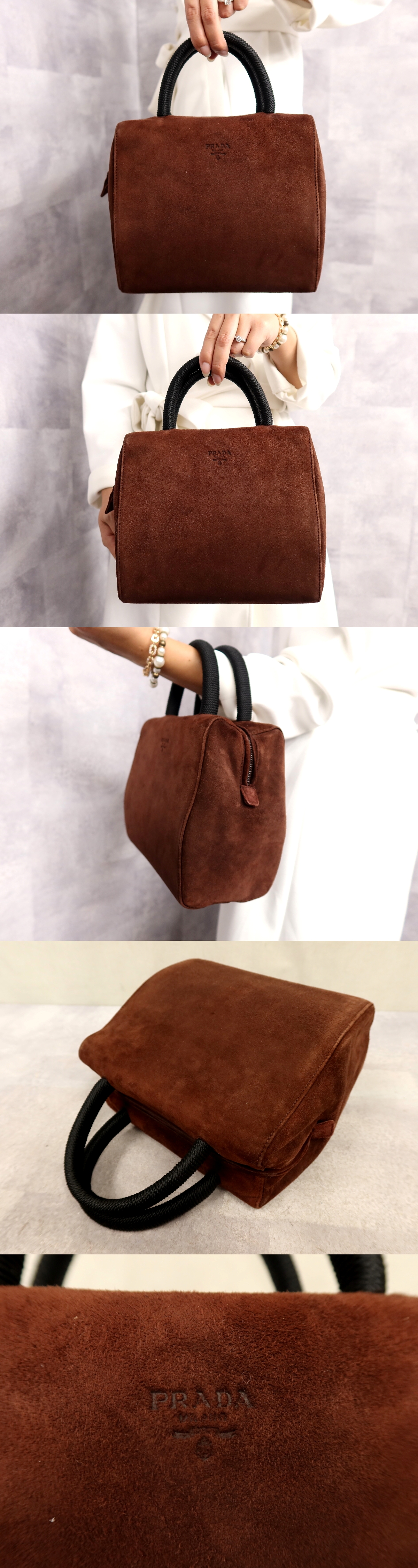 ●超美品●PRADA プラダ●スエード レザー 本革●ミニ ハンド バッグ●ブラウン 黒●ゴールド金具●イタリア製●ヴィンテージ●Js62341 收藏