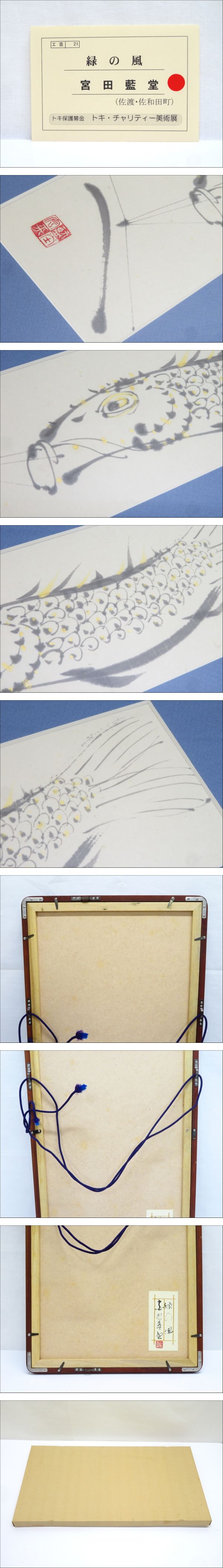 ◆◇【真作】三代目 宮田藍堂 『緑の風』金彩水墨画 トキ・チャリティー美術展 美術品 額装付◇◆ 收藏