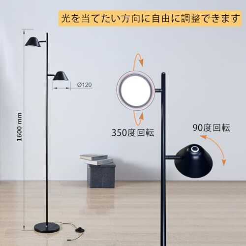 LEDフロアライト、20Wフロアライトリモコン付き、間接照明おしゃれ、調光・調色、タイマー、ダブルヘッドライト+タッチコントロールでスタンド、寝室/リビング/書斎/オフィス向き、ブラック