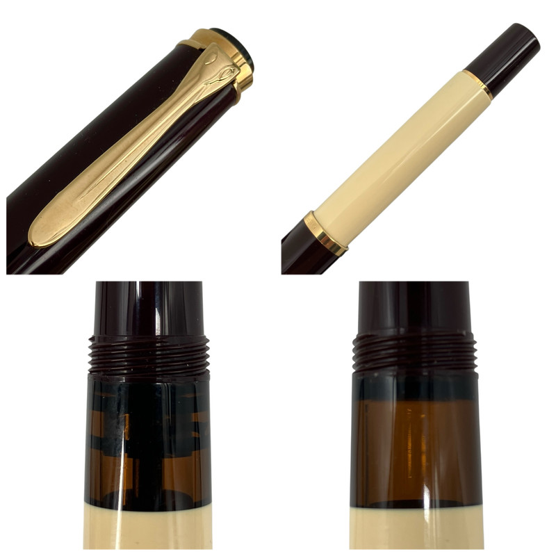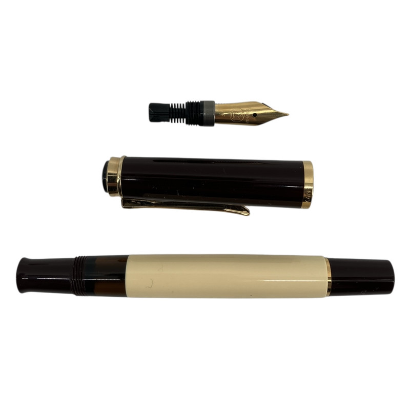 1円スタート PELICAN ペリカン 万年筆 ペン先F ベージュ ダークブラウン ゴールドカラー 筆記用具 事務用品 文房具 GERMANY 現状品 收藏