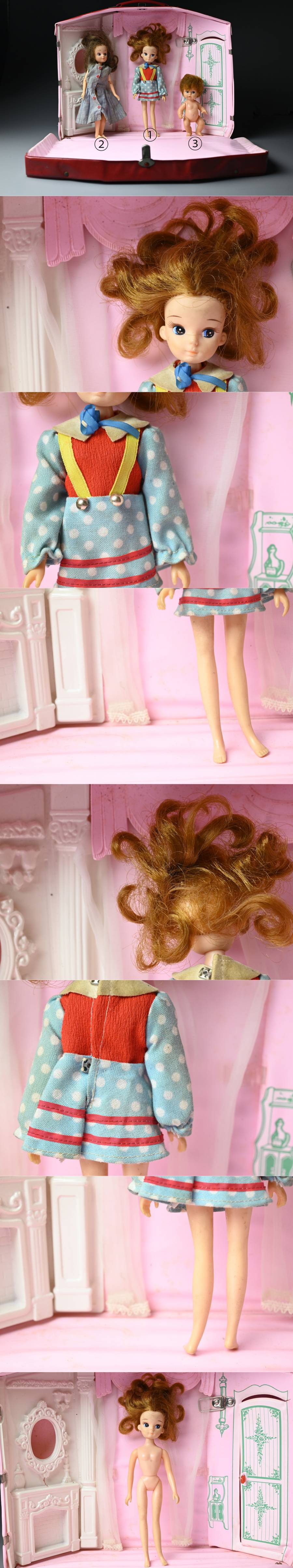 【昊】昭和レトロ TAKARA 二代目 りかちゃん ニューリカちゃんハウス 人形3体セット ダッコちゃんマークタグ付 タカラ 当時物[M120s] 收藏