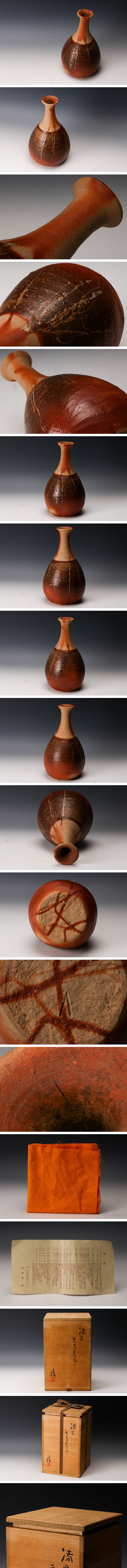 【佳香】人間国宝 伊勢崎淳 備前ラッキョ花生 作家一致木箱 共布 栞 本物保証 收藏