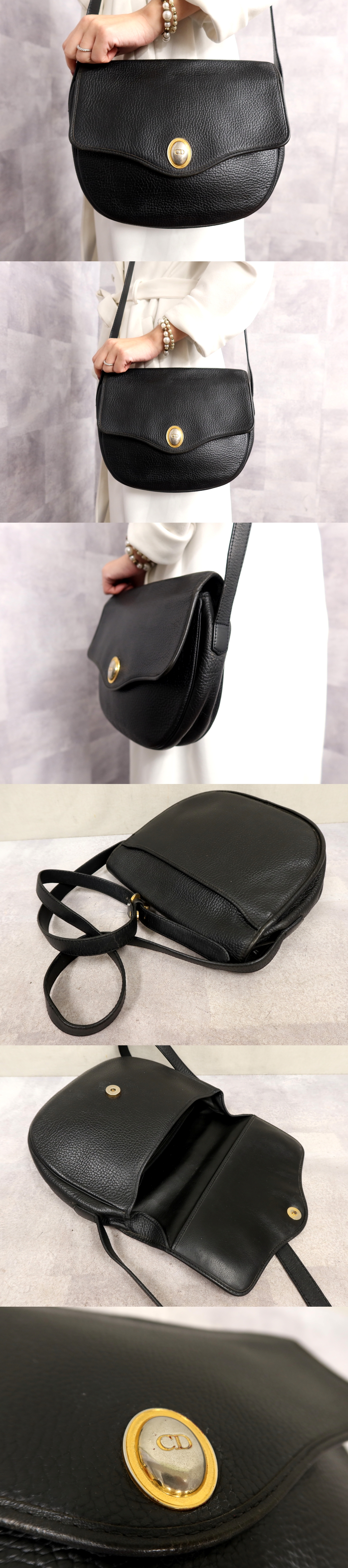 ●超美品●Christian Dior クリスチャン・ディオール●カーフ レザー 本革●ショルダー バッグ●黒●ゴールド金具●収納 かばん●Js63038 收藏
