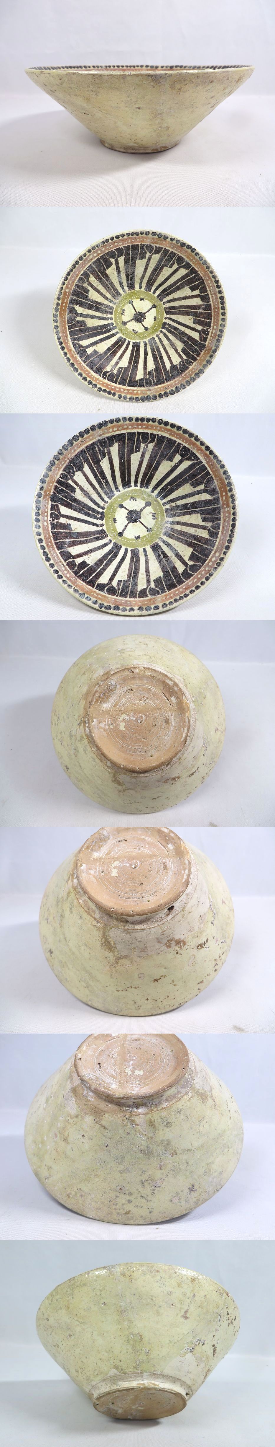 高さ6.5 口径17 貴重なペルシャ陶器の鉢です。十二世紀、グルガン窯での製作品である旨、鑑定家、市川清が極めています。画像のような直しがあります。
