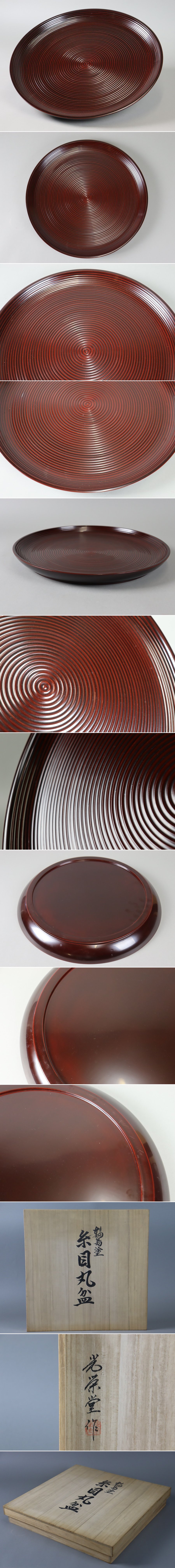 輪島塗 光栄堂作 糸目丸盆 直径43cm 共箱 木工芸 漆工芸 漆塗 茶道具 伝統工芸 細密細工 古美術品[d1390] 收藏