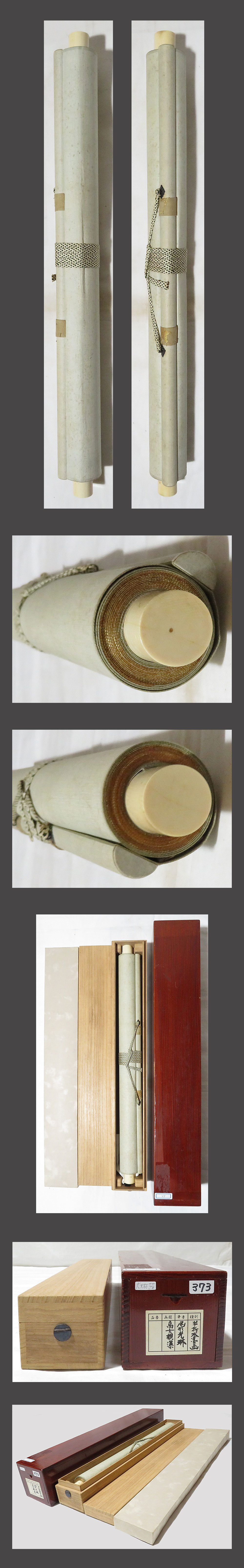 ・掛軸の軸先ですが、細心の注意を払って梱包しておりますが、 配送中の振動・気温・経年劣化等で外れてしまうことがあります。 軸先の外れは、破損ではございませんので、返品の対象にはなりません。 大変お手数ですが、お客様ご自身での修復をお願い致します。 ・添付写真の画像と説明文でご理解頂ける方、ご入札を宜しくお願い致します。 ・添付写真の画像は撮影の光度により、現物と若干の色合いの相違が生じる事があります。 ・添付写真の画像は受取完了のご連絡を頂いた後に速やかに消去しますのでご了承下さい。 ・土・日・祝日はお休みさせて頂きますので、商品発送は、月曜日以降になります。 ・祝日の場合は、翌日の平日以降の発送になります。 ・土・日・祝日は、メールの返信が若干遅れる事がございます。どうか、ご了承下さい。 ・時間的に余裕がない場合などでお答えが出来ない事も多々有ります。 ご不明な点は落札日前日までに早めにご質問下さい。 ・商品トラブルがあった場合は、直ちにご連絡下さい。 お取引に付きましては迅速・丁寧に対応させて頂きます。 ・落札後、できるだけ2日以内に連絡(返信)を頂ける方、 5日以内にご入金できる方の御入札を御願い致します。 ・新規の方や評価の総評が悪い方は当方の判断にて、入札取り消しを行う場合がございます。 ・お取引に付きましては、迅速、丁寧に対応致しますのでどうぞ、宜しくお願い致します。 ・古美術品や古物や古書画の出品が多いため、神経質な方がご入札される場合は、 ご自身が納得の行く価格でご入札ください。 ・万一、ヤフーのシステム障害により、公正なオークションができなかったまま終了し、 落札者様にご落札された場合は、当方より取引ナビで取引中止のご連絡を致します。 その時は、どうか、ご了承をお願い致します。 ・終了当日・直前の入札の取り消しは、 トラブルの原因となりますのでご遠慮お願い致します。 ・入札後の取り消し(キャンセル)は行っておりません。 ・落札後のキャンセル・返品はお断りしてます。 入札前によくご確認頂き、間違いのないようにご注意下さい。 |