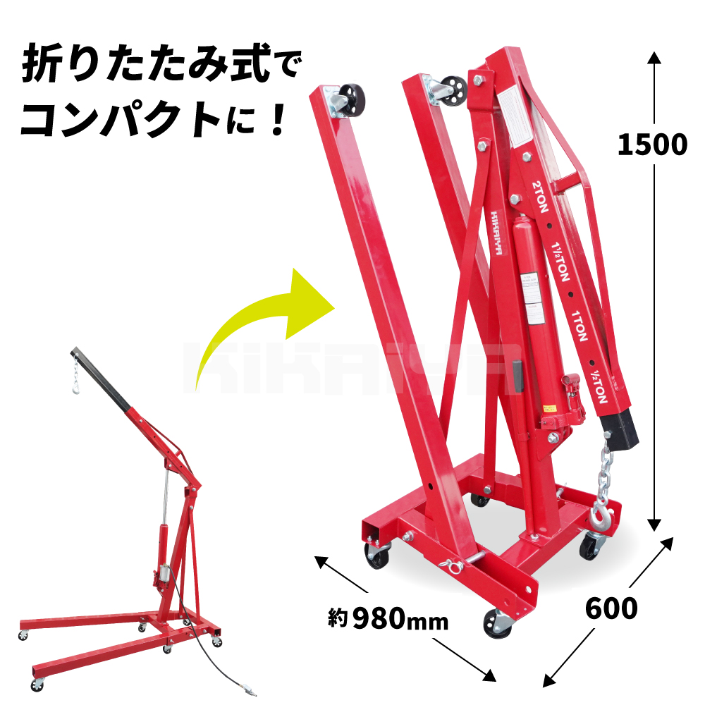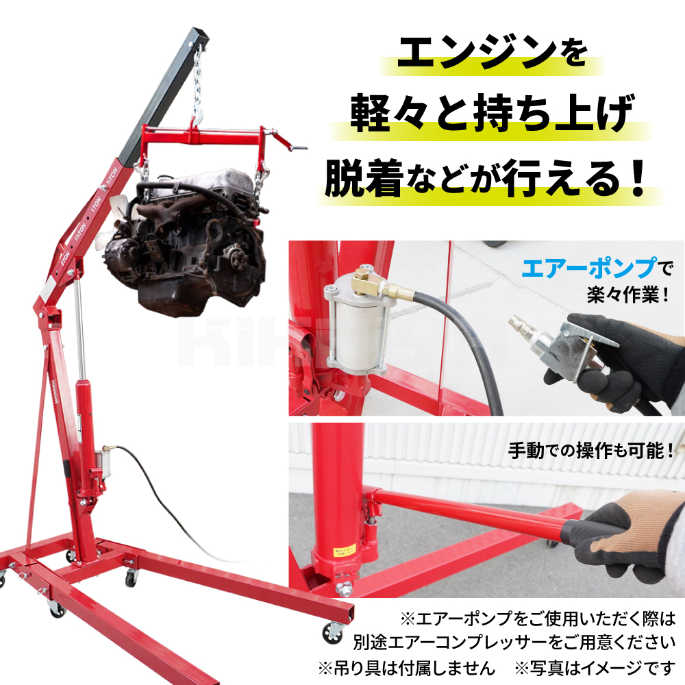 エンジンクレーン2トン エアーポンプ付 最大能力500kg 折りたたみ エアー手動兼用 油圧式 エンジン脱着 車用工具 6ヶ月保証 收藏