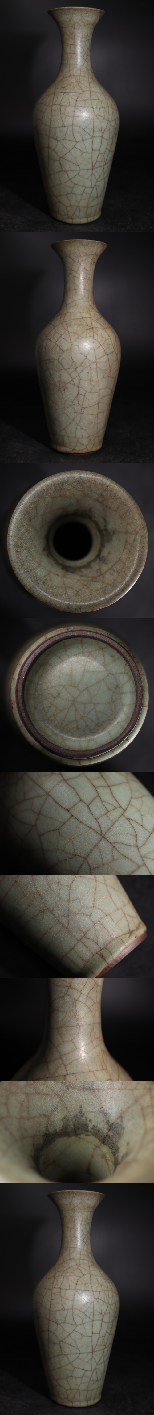 | 時代 哥釉 青釉 氷裂 花瓶 / 中国美術 花器 壺 煎茶飾 検索: 哥窯 龍泉窯 .G3584 |