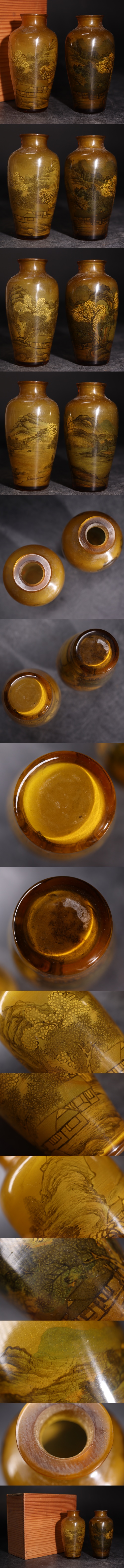 時代 ガラス製 風景図 小壺 二点 木箱付 / 中国美術 鼻煙壷 壺 煎茶飾 検索: 乾隆ガラス 清 .G3587 收藏