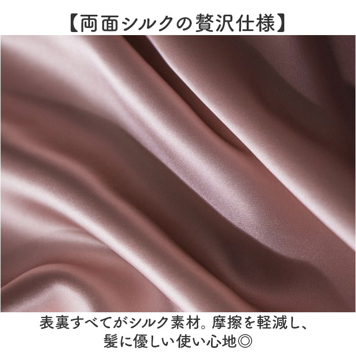 ・表裏すべてがシルク素材。摩擦を軽減し、髪に優しい使い心地◎
