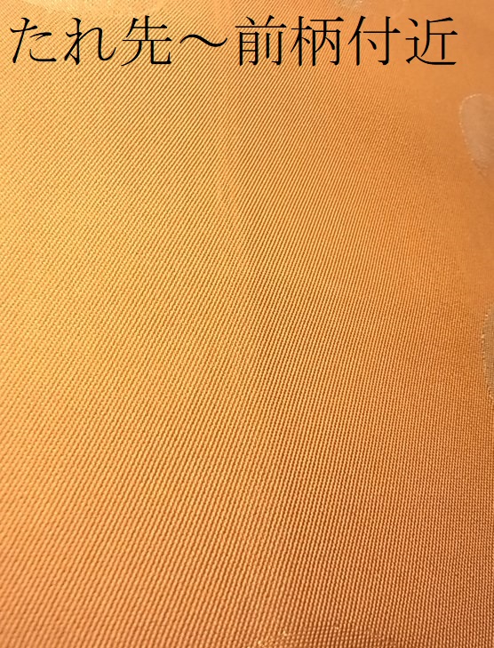 | 【正絹】 状態は接写画像のように たれ先から前柄付近にかけて折れ山の薄い汚れがございますが その他特に目立ったシミ汚れなどもなく大変良い状態です。 大変上質な逸品になります。 お安く出品致しますので、是非この機会にいかがでしょうか? ※たれ先未かがりですが着用には問題ありません。