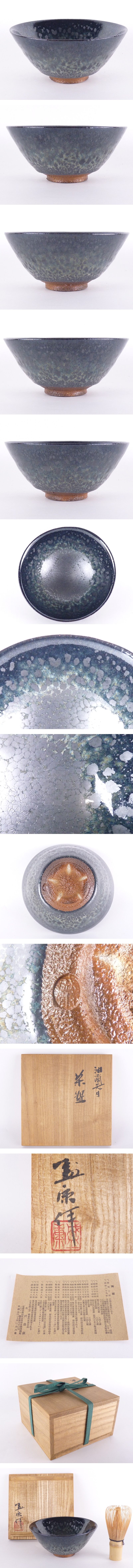 【扇屋】木村盛康「油滴天目 茶碗」共箱 高さ 約6.5cm 幅 約14.5cm 茶道具 京焼 油滴 天目釉 tw7 收藏
