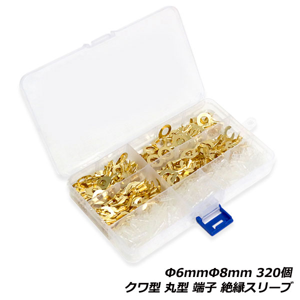 320個 セット 絶縁スリーブ 真鍮製 C型 クワ型 丸型 端子 Φ6mmとΦ8mm 裸圧着端子 自動車 バイク 修理 加工