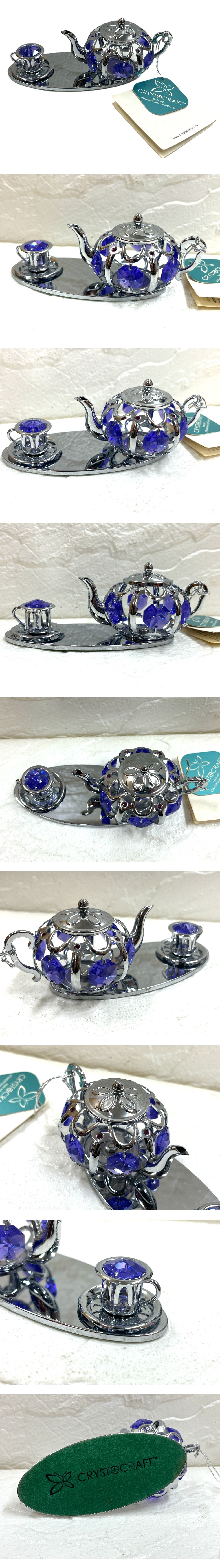 CRYSTOCRAFT ティーポット カップ 置物 小物 インテリア タグ付き 未使用クリスタルオーナメント クリスタルガラス 收藏