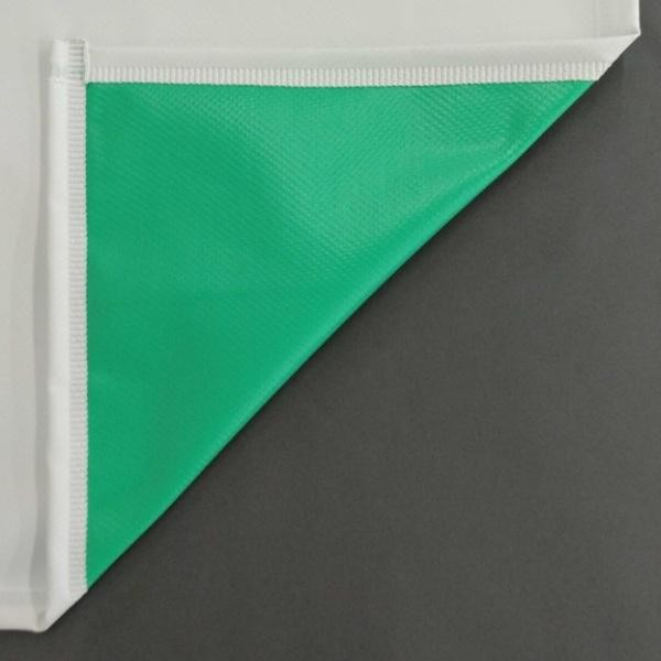 | 素材・材質 | 表:塩化ビニールコーティング 基布:ポリエステル 裏:塩化ビニールコーティング ヒモ:パールテックス(イトデナe) ハトメ:ニッケル |