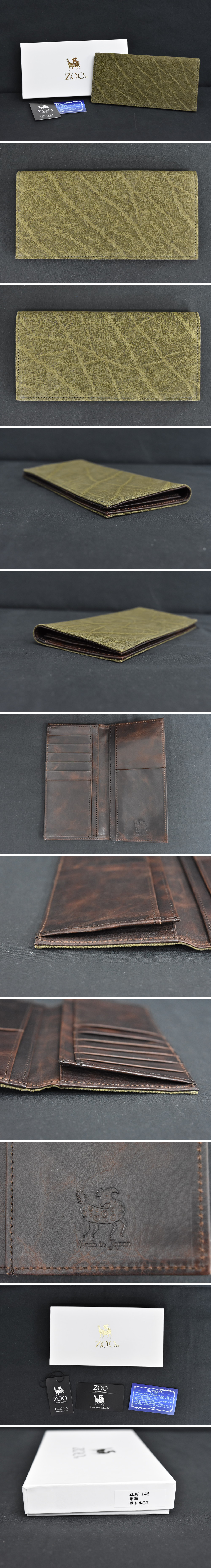 【未使用】エレファント 象革 ロングウォレット 二つ折り ボトルGR ZOO ZLW-146 日本製 ゾウ革 5Y223 收藏