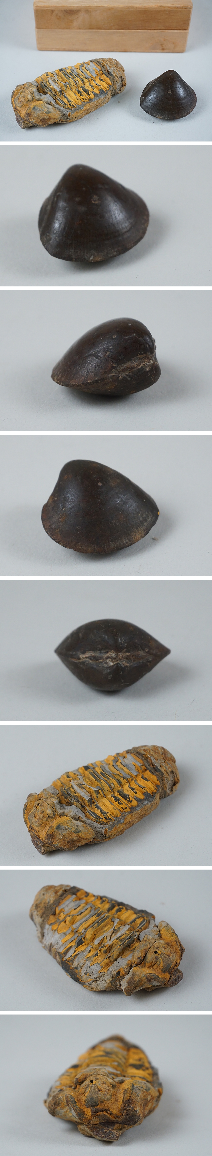 | 小振りな三葉虫の化石、貝(蛤?)のような化石二点です。 擦れなどあります。画像ご参考の上ご入札ください。 三葉虫 重さ51g 幅6.8×4.0×1.9cm 貝 重さ17g 幅1.8×2.9×3.1 | |||
