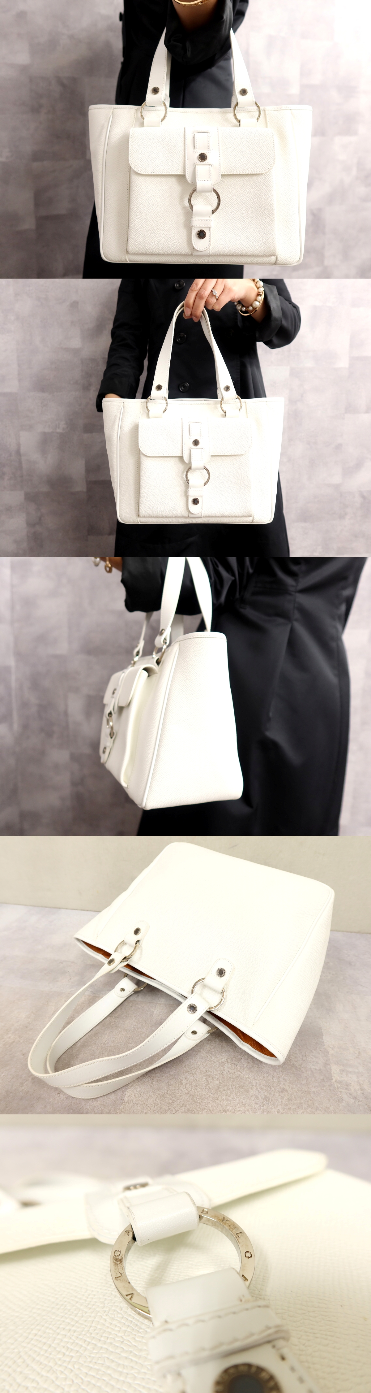 ●超美品●BVLGARI ブルガリ●カーフ レザー 本革●トート ハンド バッグ●白●シルバー金具●腕掛け●収納 かばん●Js66335 收藏