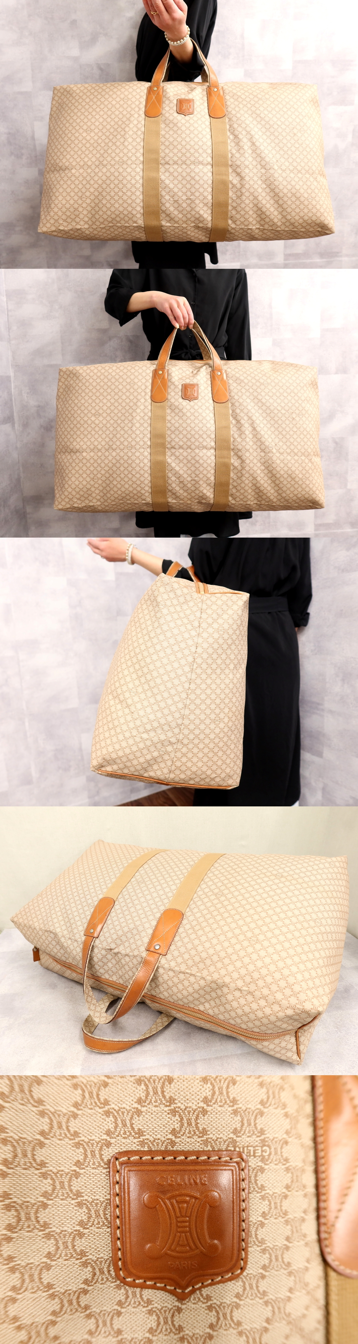 ●超美品●CELINE セリーヌ●マカダム●PVC カーフ レザー 本革●ボストン バッグ●ベージュ ブラウン●大容量●旅行 収納 かばん●Js66721 收藏