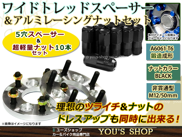 レガシィB4 BE# ワイド スペーサー 5H PCD100/M12 P1.25 2枚 15mm 2枚 レーシングナット M12 P1.25 50mm 非貫通型 黒 收藏