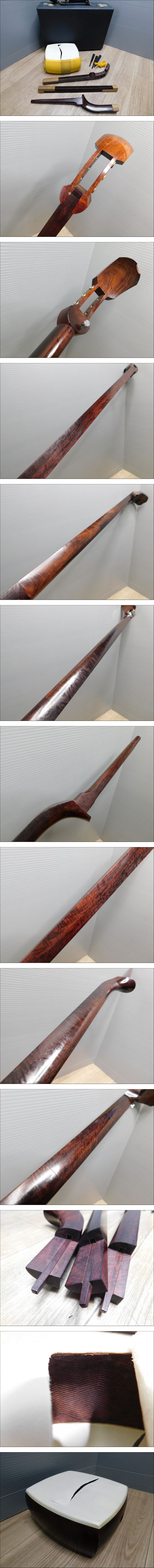 【細棹高級三味線】びっちりトチあり 紅木 金細(金ホゾ)1本溝(一段溝) 綾杉胴 長唄 小唄 現状/M582 收藏