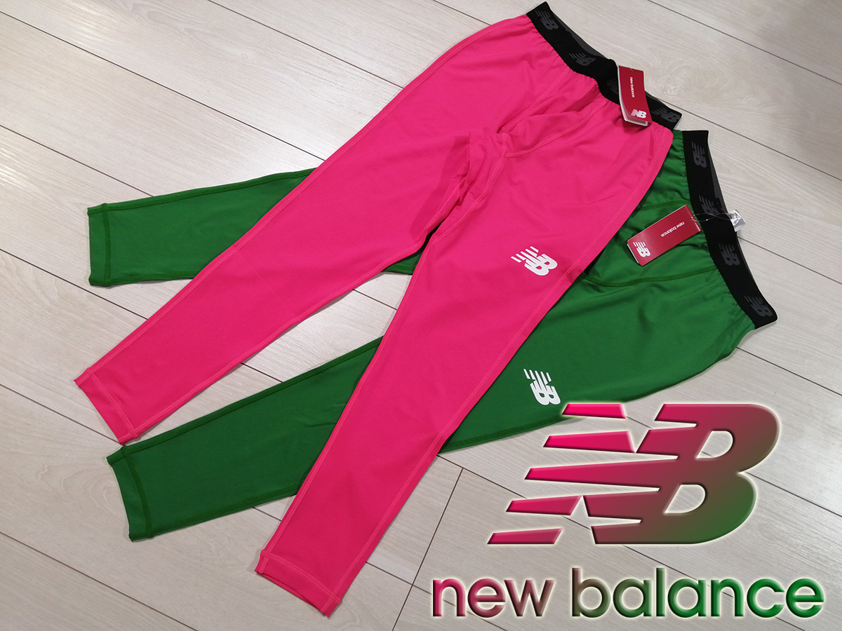 ◇新品 ニューバランス NewBalance ロングタイツ スパッツ 2枚セット メンズ M ネオンピンク グリーン 定価9,460円 速乾 レギンス 收藏