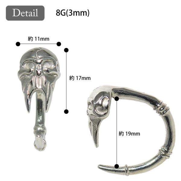 ボディピアス クロウ スカル 8G(3mm) サージカルステンレス 個性的 ひっかけ スタイリッシュ モチーフ クロー イヤーロブ アクセサリー ┃ 收藏