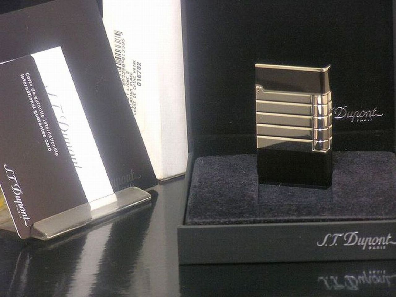【 未使用品 】S.T.Dupont パラディウムプラチナミラー仕上げ&ブラック漆 ライン2 ガスライター◆煙草! デュポン 未使用品 喫煙具グッズ 收藏