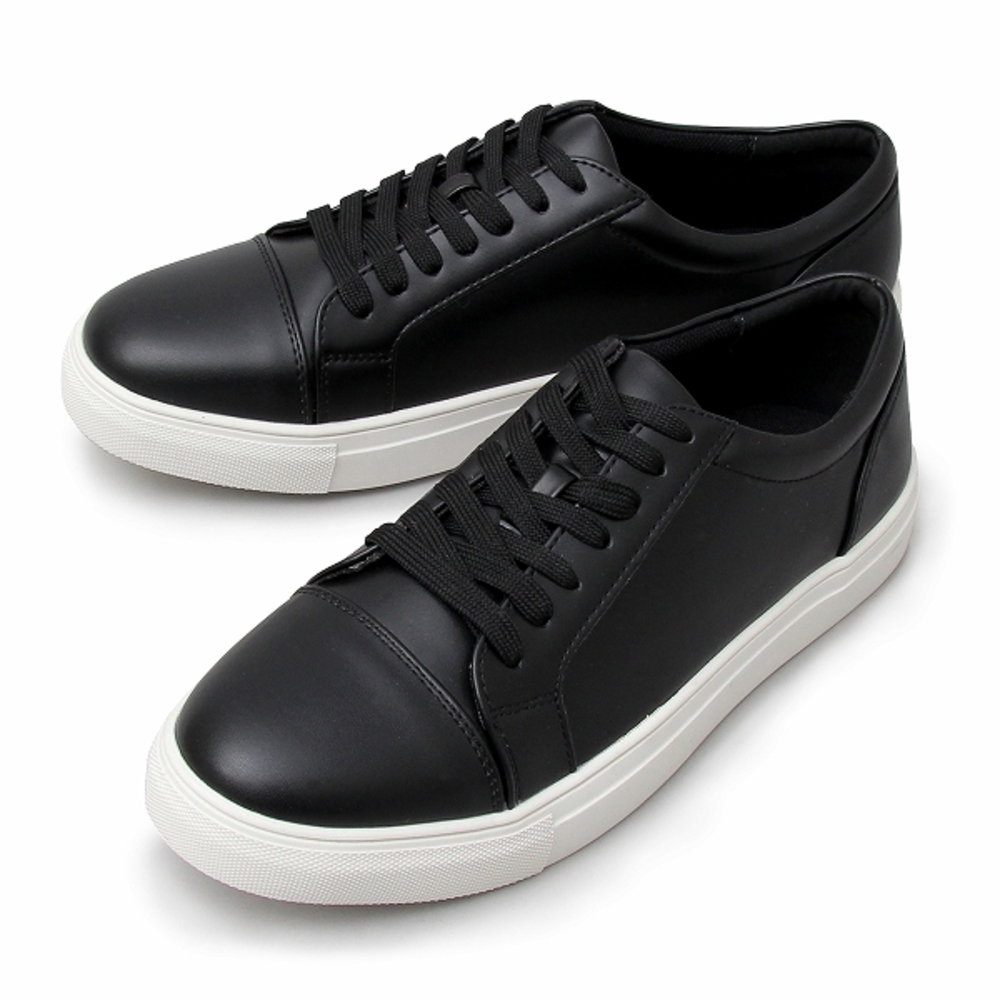 ☆ BLACK ☆ S(約25cm-25.5cm) スニーカー メンズ 白 通販 黒 ホワイト ブラック ローカット レースアップ シンプル フェイクレザー PUレ 收藏