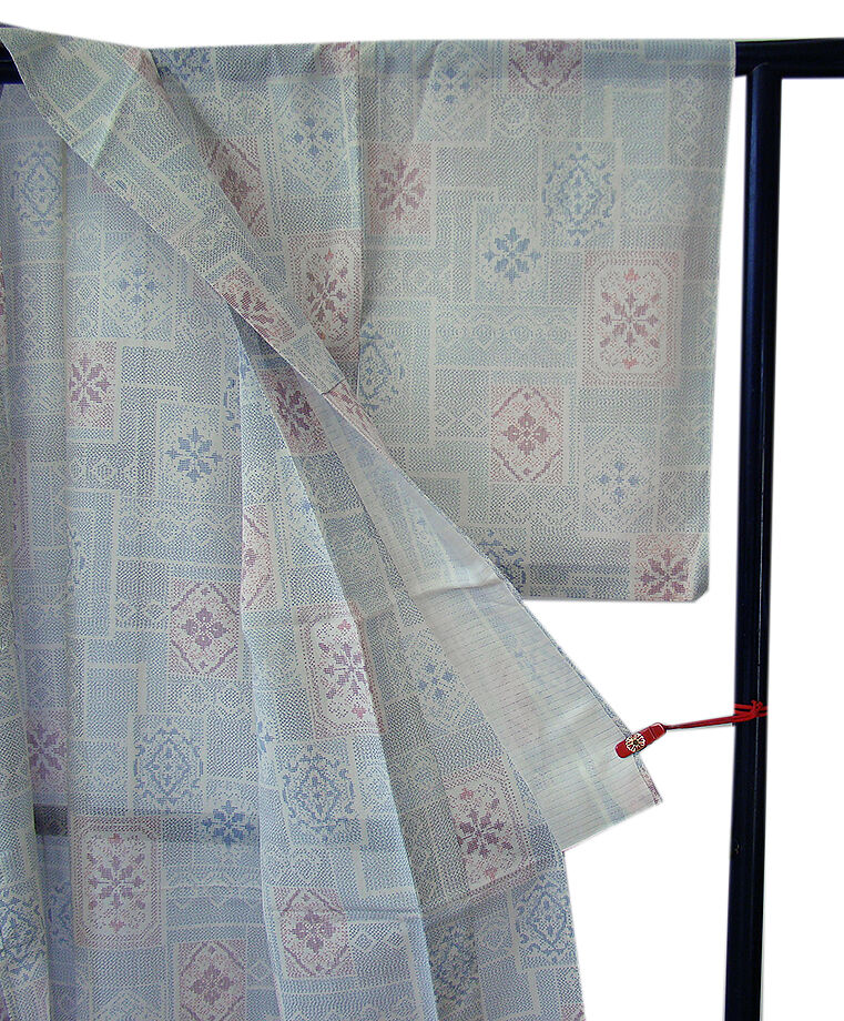 | 商品説明 | こちらのお品は夏物ですので、7月、8月にお召頂ければと思います。 着物には、大きく分けて「袷(あわせ)の着物」と「単衣(ひとえ)の着物」と「夏着物」があります。 反物(表地)を着物に仕立てるときに、裏地類をつけるものを袷の着物、 つけないものを単衣の着物と呼び、胴裏や八掛といった裏地がつかない一枚ものの着物です。 また裏地がないため、座る時などにヒップのラインが目立たないよう、 居敷当て(いしきあて)の生地をつけることもあります。 居敷当ては付いておりません。 大変にしなやかでさらりとした透け感が愉しく、独特のシャリ感に満ち溢れた 肌にべた付かない極上の風合いを纏う通好みな夏紬、 白色地に青、赤、ワイン色等の織柄が洒落感溢れ粋な着物姿を奏でております。 |