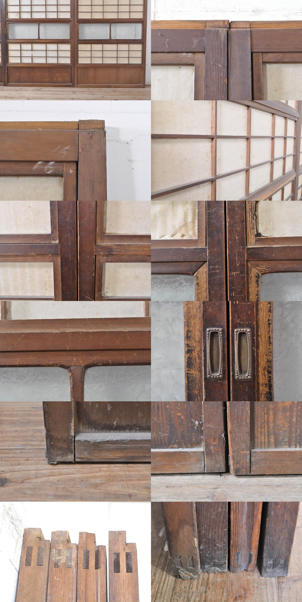 R-072916 アンティーク建具 風情のある佇まいが魅力的な裏障子付き格子戸4枚セット(引き戸、障子戸、ガラス帯戸)(R-072916) 收藏