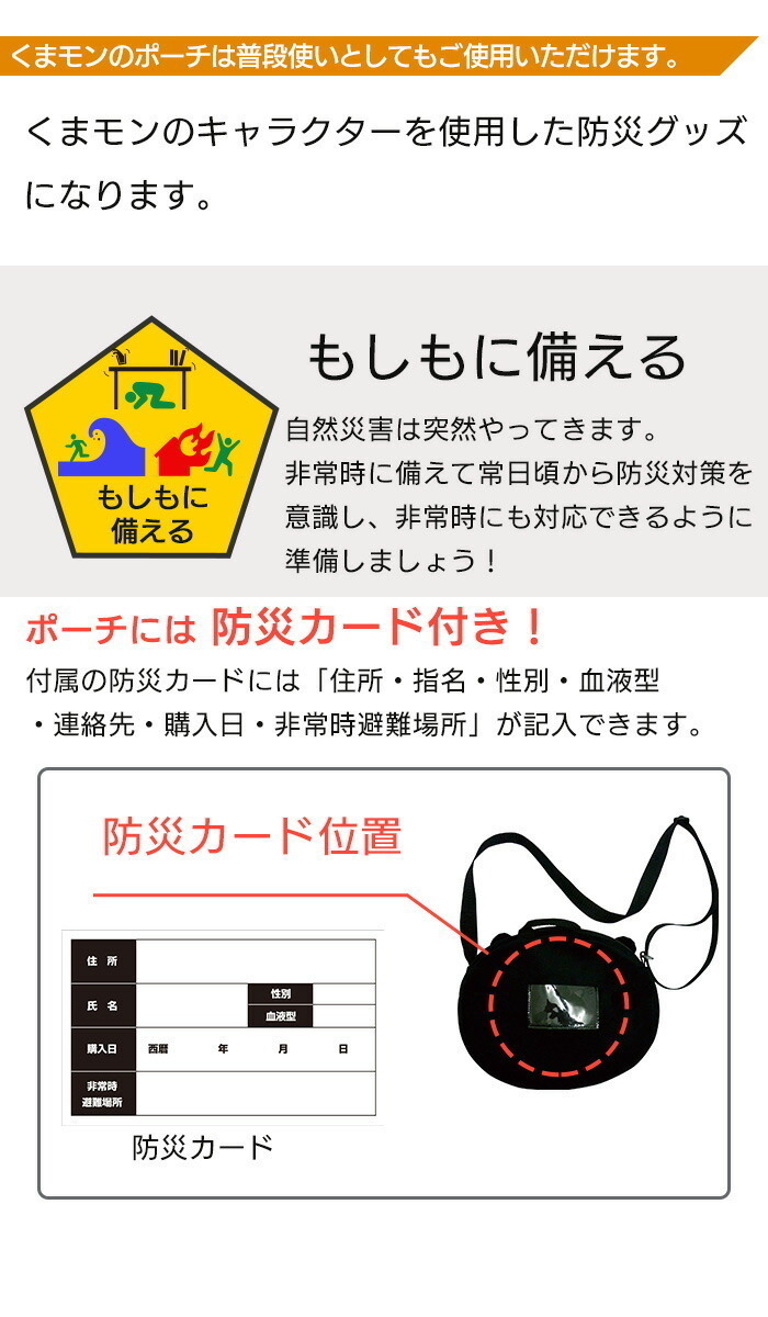 | 商品名 | くまモン バッグ ポーチ B 防災セット 子供用 非常持出し 防災 こども 防災カード付 かばん バッグ かわいい くまもん M5-MGKNKG00020 |