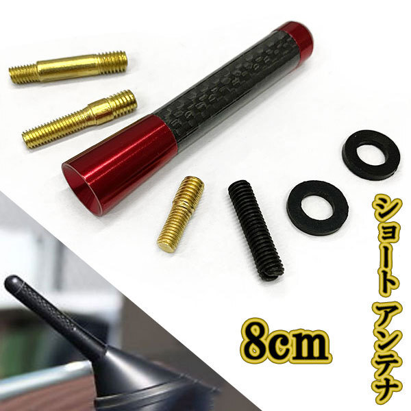 ショート アンテナ カーボン ドレスアップ ユーロアンテナ ヘリカル ルーフ 交換 8cm 自動車 汎用 レッド