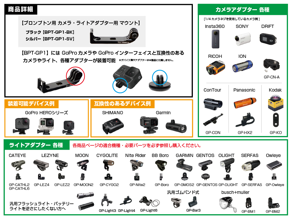 ※GoProはマウント・アダプターによってはキツイ・ゆるい場合もございます(特に樹脂パーツ)