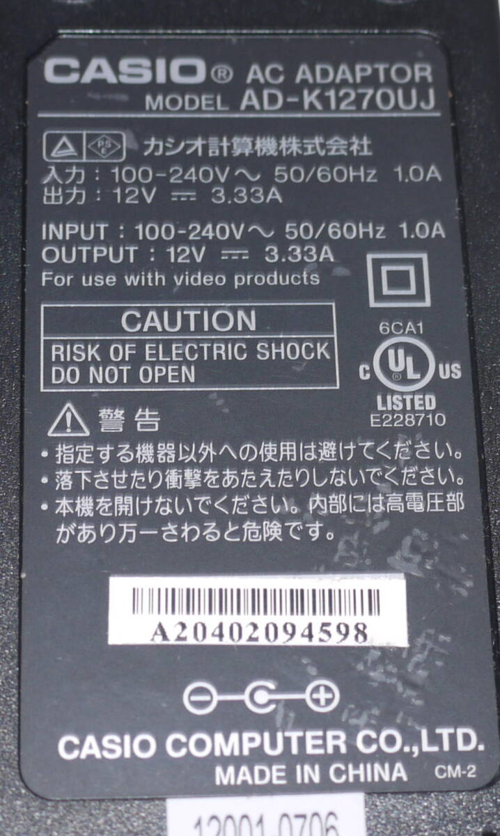 CASIO ACアダプター AD-K1270UJ DC12V 3.33A 動作品 收藏