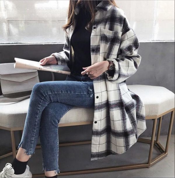 M~3XLサイズ■秋新品 カジュアル★ナチュラル★チェック柄★長袖★ブラウスシャツ★ ゆったり★普段着 ★チュニック ★ 白 收藏