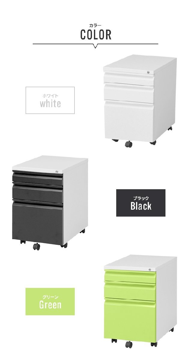 デスクワゴン キャビネット サイドチェスト 3段 キャスター付 バイカラー おしゃれ 収納 机 脇 書斎 グリーン M5-MGKFGB00410GN 收藏