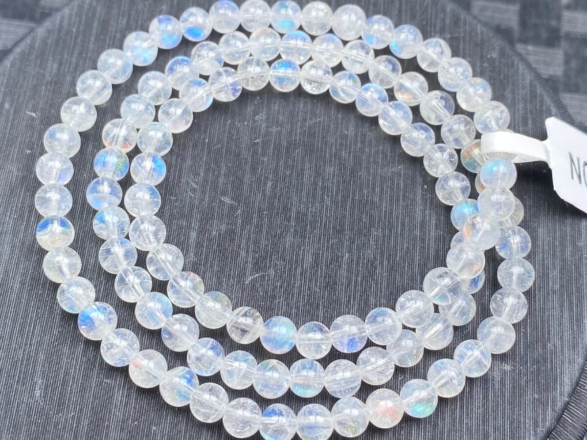 即決 0615k435 マダガスカル産★【45Aロイヤルレインボームーンストーン】★ 3重巻き 5.2mm 52cm(新品) 收藏