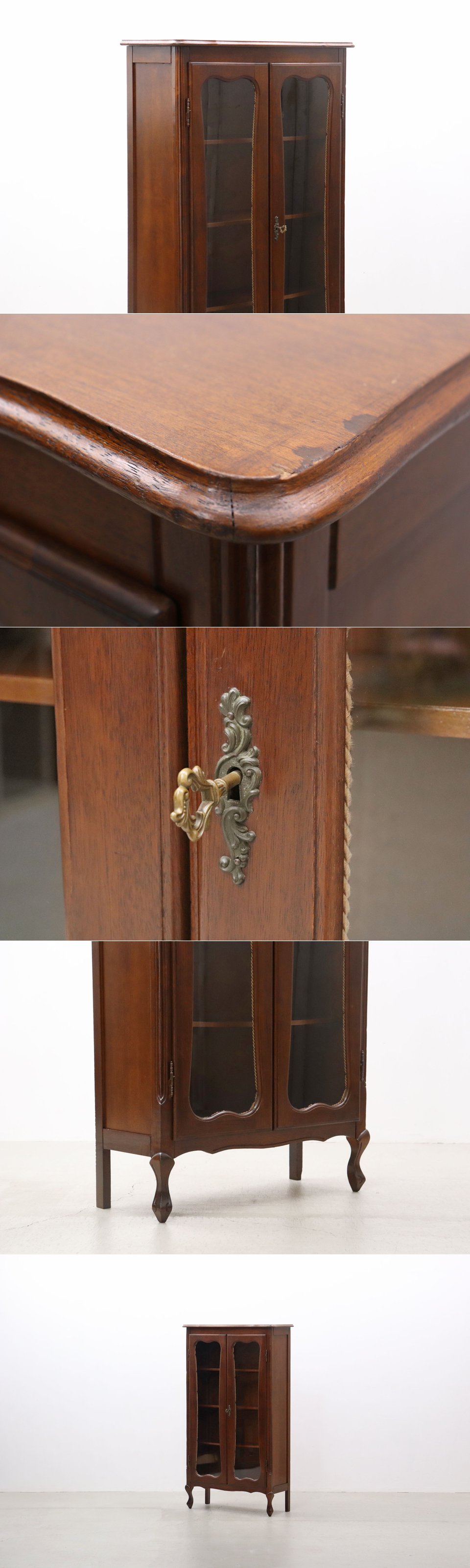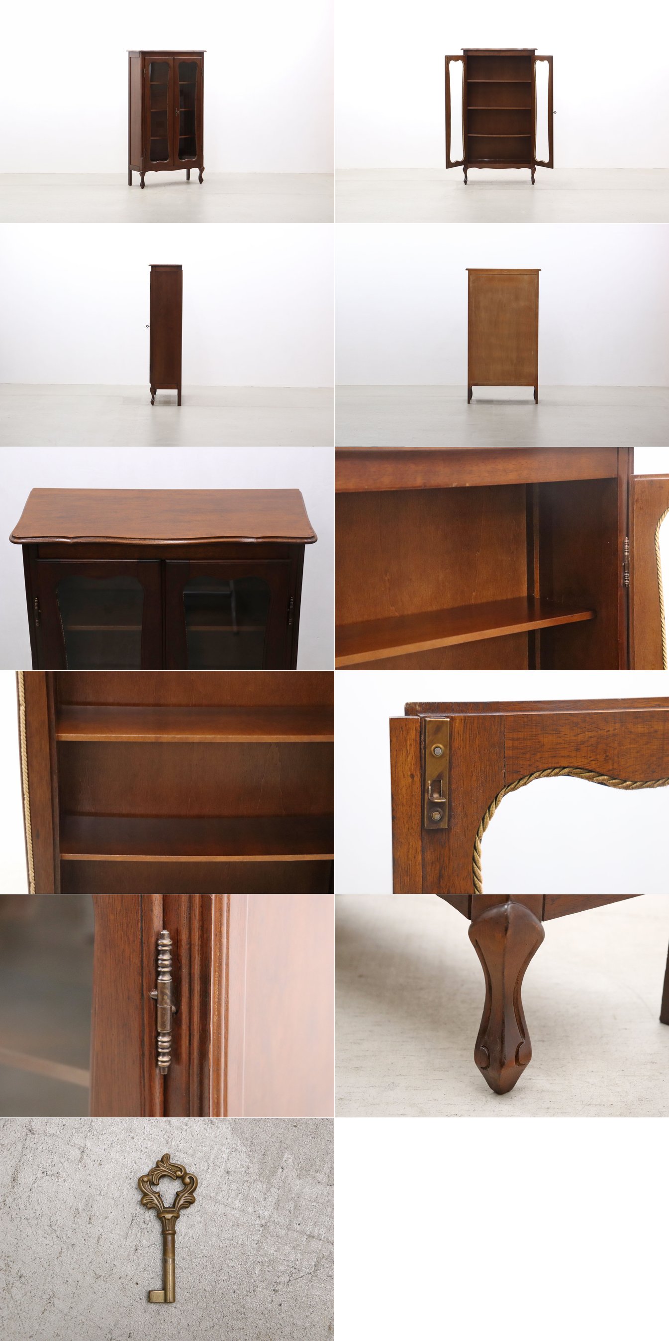 ◆クラシカル ガラス キャビネット キュリオケース 飾り棚 食器棚 本棚 収納 猫脚 レトロ/ヴィンテージアンティーク英国洋館/PIT09090◆ 收藏