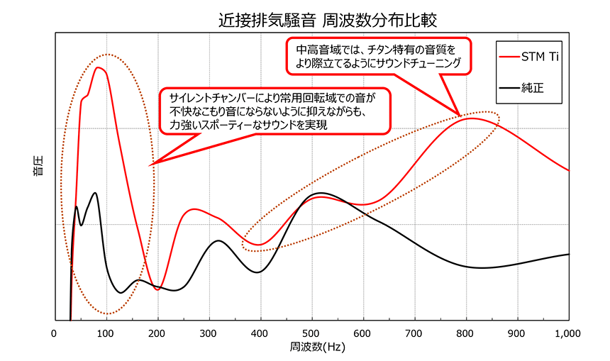 ◆サイレントチャンバーの採用やサイレンサーの最適化により3気筒独特の音を低減し、踏み込んだ時には力強く気持ちのよいチタンサウンドをお楽しみいただけるように仕上げました。