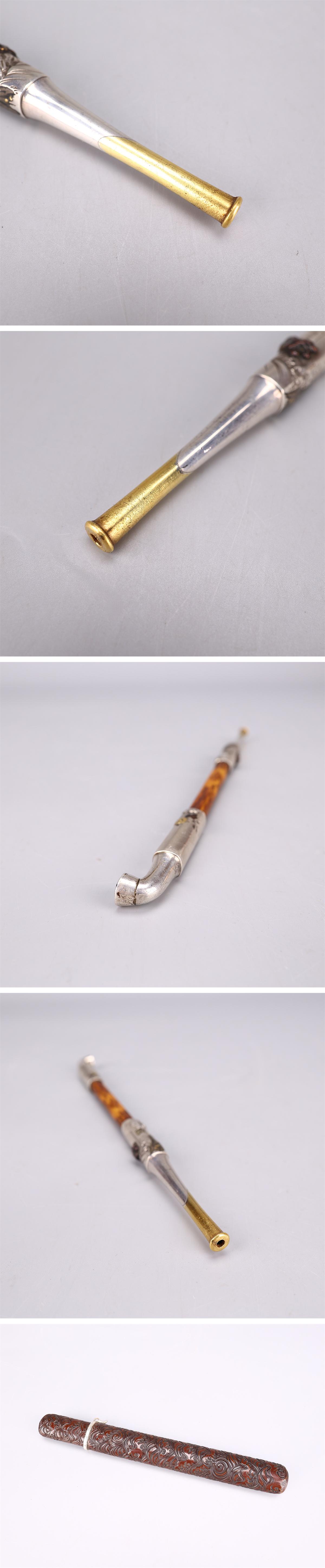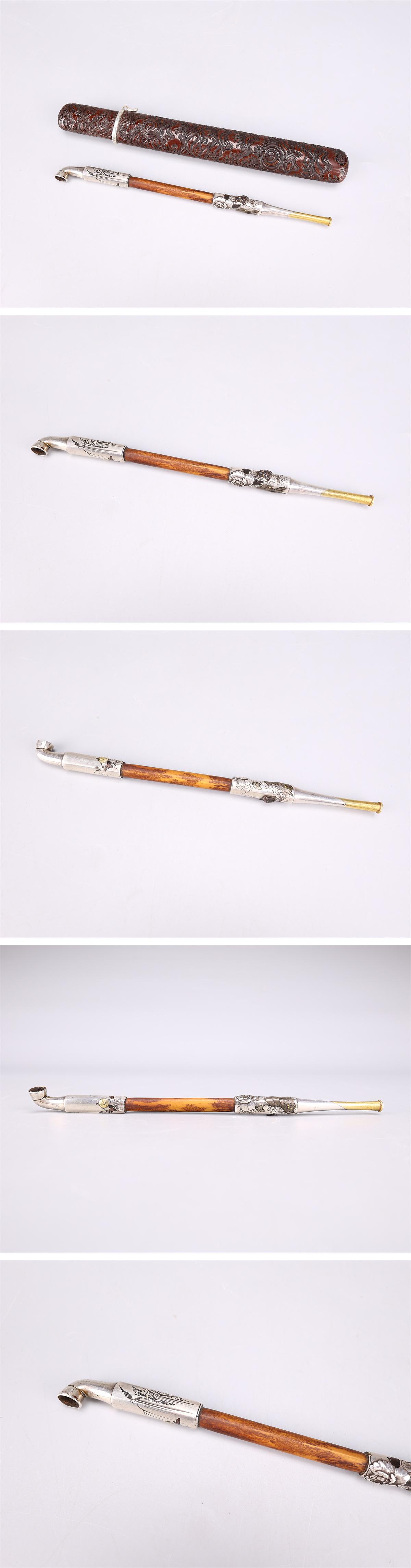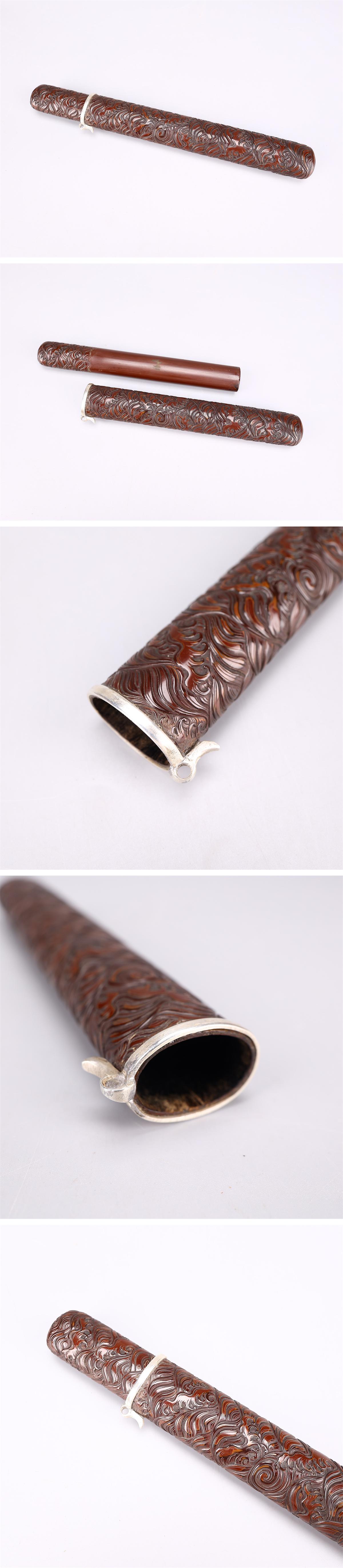 【吉】GB459 喫煙グッズ 【純銀 秋田】 【純金 鎗徳】 勝峰刻 煙管 重49g 漆芸 堆朱 煙管入付 極美品ZI! 收藏