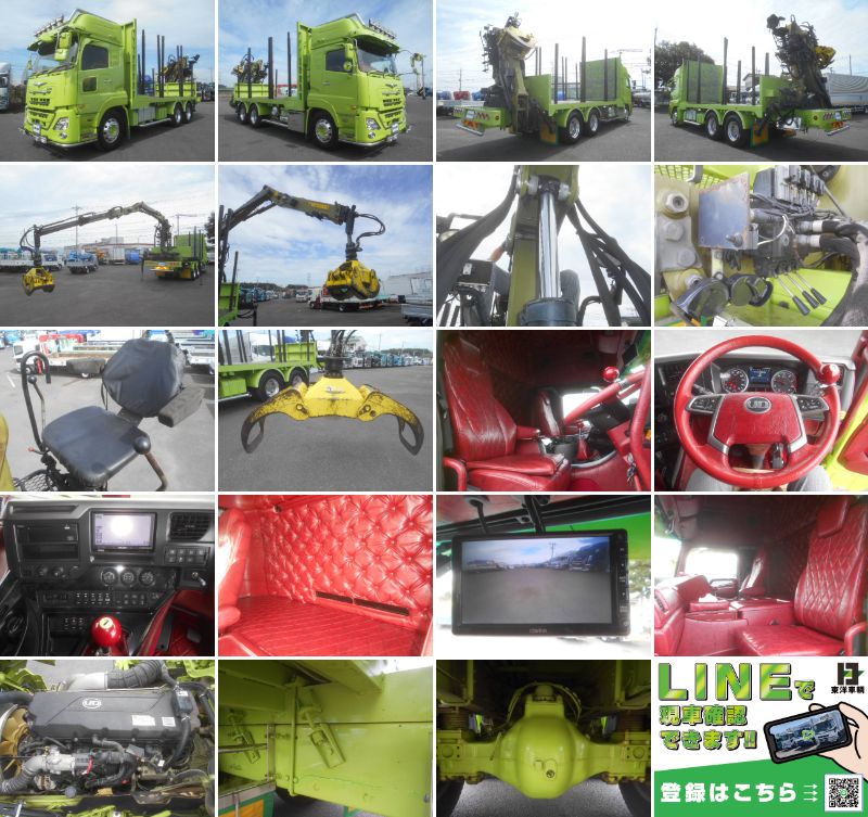 ヒアブクレーン付平ボディ 上物:ヒアブ製 F105ZT 上物年式:2018年製 ログリフト 林業仕様 360度回転グラップル付 トップシート 2デフ 積載8.6t 荷台寸法:583×248 スタンションホール&スタンションバー 地上高:128 ホイールベース:563 ハイルーフ リターダー付 390馬力 架装パーツ多数 アルミホイール バックモニター付 走行53万km 7速ミッション 車検付(R8/9/21) 排ガス適合(各都市登録&乗り入れ可) タイヤサイズ:F295/80R17.5 R11R22.5 |