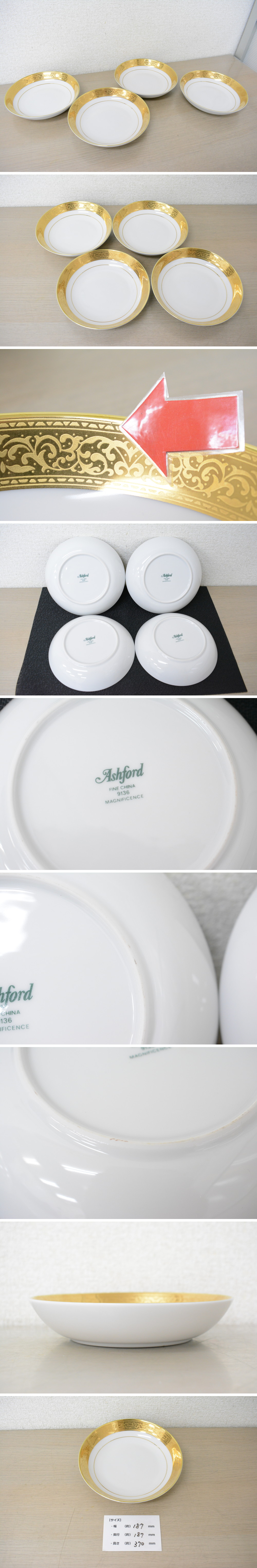【未使用/長期保管品】4枚セット Ashford アシュフォード マグニフィセンス 約18cm幅 ボウル/シリアルボウル ゴールド色 5U993 收藏