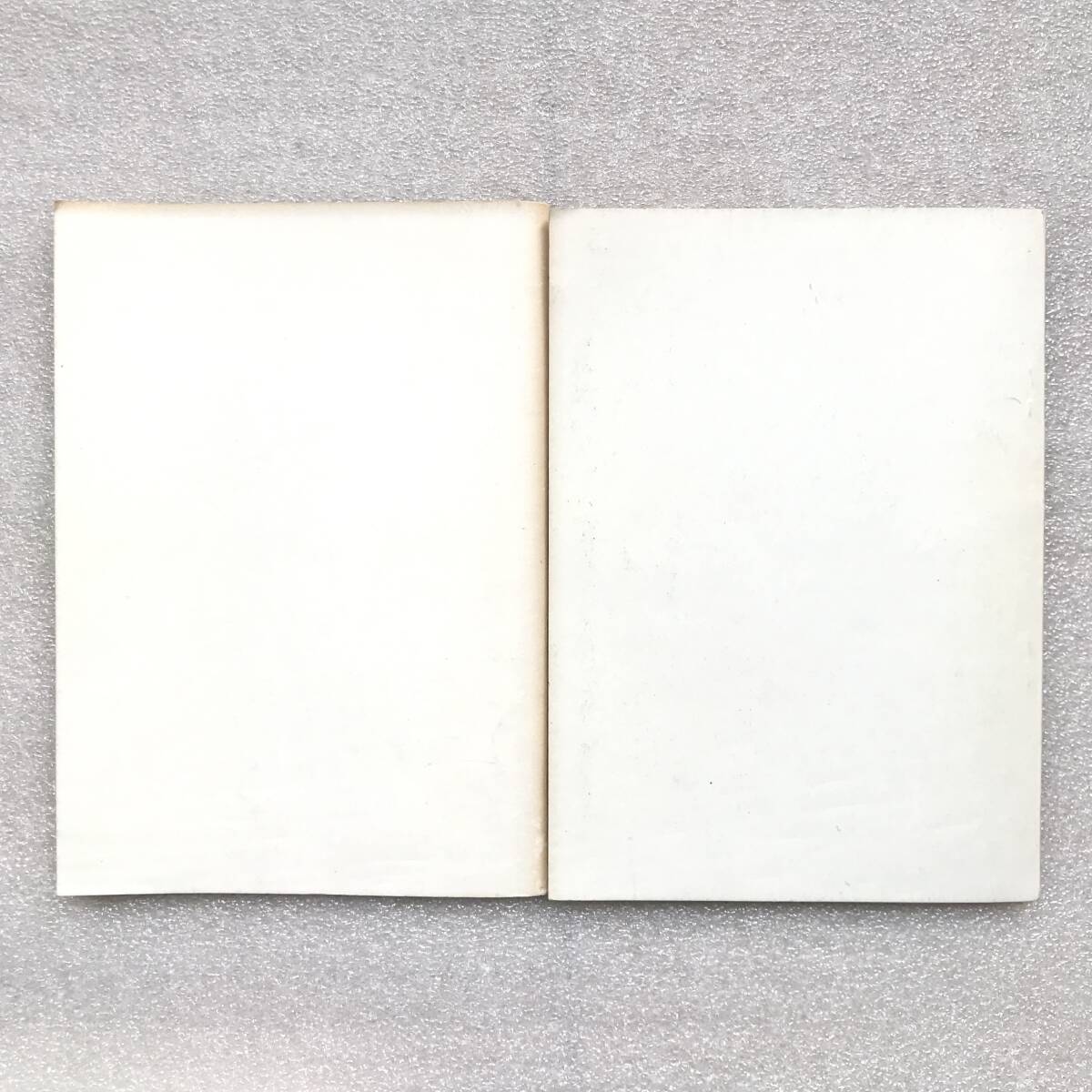 (「高級英文研究」):全40問の内、5分の1程(第18問から第25問)は完全な和訳が書かれています。その他にも、部分的な和訳や重要箇所への印、注釈などの書き込みが有ります。経年により、背と天・小口・床にヤケがあり、表紙の左上・左中央にシミがある(表紙から数えて本文の5ページ分まで影響あり)のと、背の上部と下部が剥げている他、本文の半分程までに読み皺(本を読む時につける折り目)、全体的に極小さな擦れ・傷・汚れ・ヨレ等がある以外は、特に目立った傷や汚れはありません。