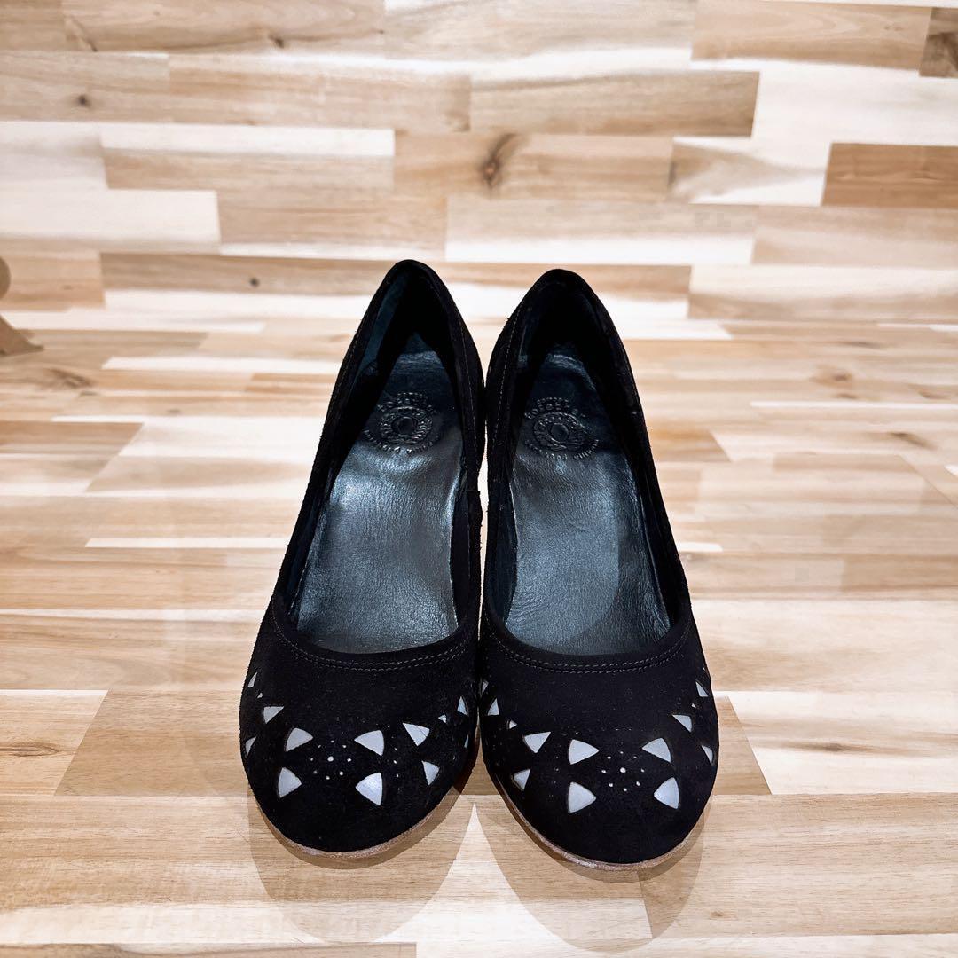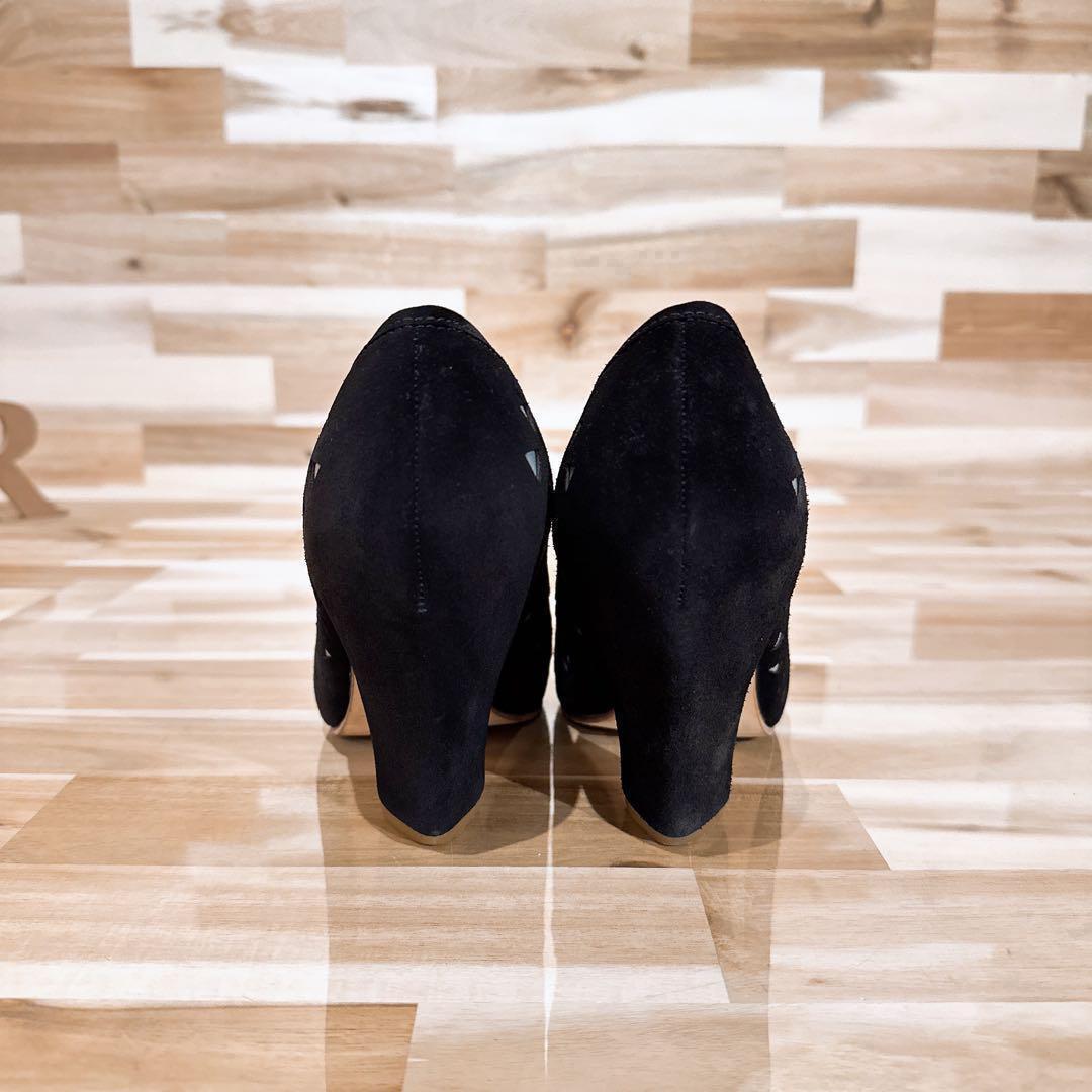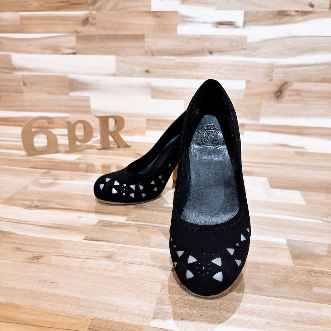 深みのあるブラックカラーがシックな印象を与え、丸みのある上質なスエード素材が大人らしい落ち着きを添えてくれる一足。カットワークのオシャレなカッティングが程よい抜けをつくり、足元を軽やかに見せると同時に、ヒールの高さが自然にスタイルアップを叶えてくれるCAMPERのパンプスです。※脱臭機にて除菌リフレッシュ済みです。