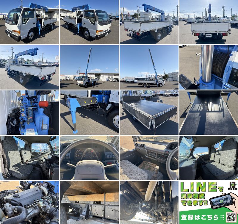 クレーン付き平ボディ 上物:タダノ製 上物年式:同年式 4段ブーム ラジコン(無線) フックイン 2.9t吊り 差し違いアウトリガー 標準ロングボディ 荷台寸法:371×180×38 荷台床:鉄板張り 積載2t 5速ミッション 走行:7万km 準中型(7.5t未満)免許対応車 |