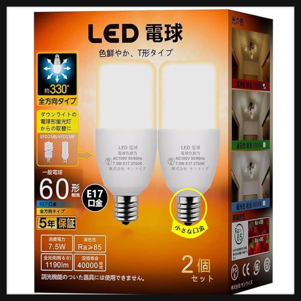 【開封のみ】BAOMING★LED電球 E17口金 60W形相当 1190lm (7.5W)電球型蛍光灯 T形タイプ 電球色 全方向タイプ 調光器非対応 密閉器具対応 收藏