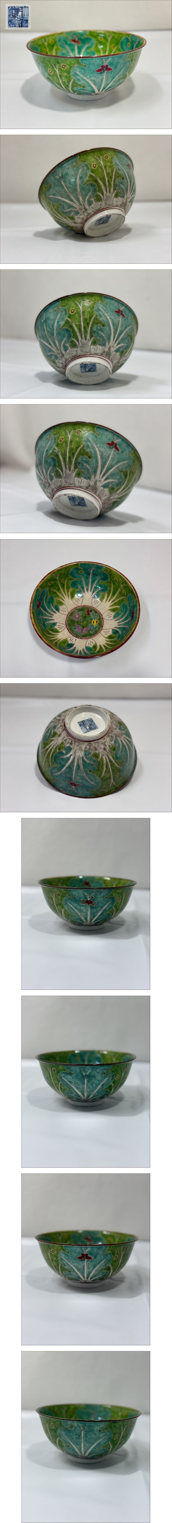 e136 / 古美術 骨董 大清乾隆年製 中国 茶碗 グリーン 蝶絵 蝶 時代物 古美術 当時物 置物 現状品 收藏