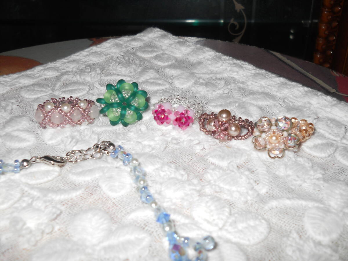 ビーズが流行った時期に購入した物と製作した物です。ネックレスの長さは19㎝位です。全部1、2回短時間着けた程度なので美品です。
