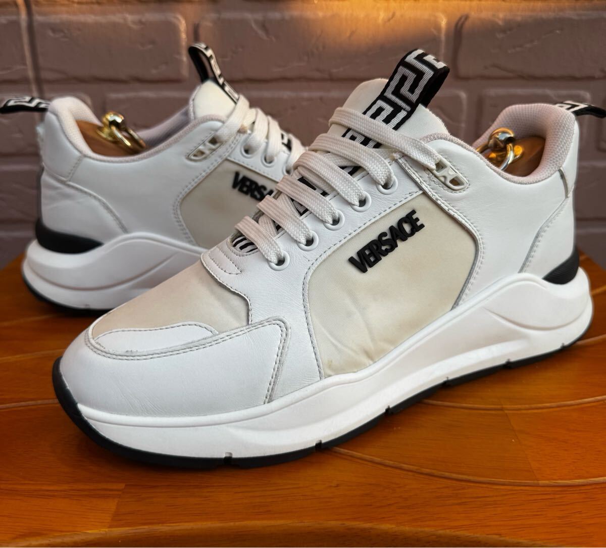【美品】VERSACE ヴェルサーチ メデューサ レザー×ナイロン テクニカルスニーカー サイズ41 26cm ホワイト ブラック イタリア製 收藏